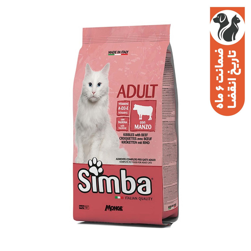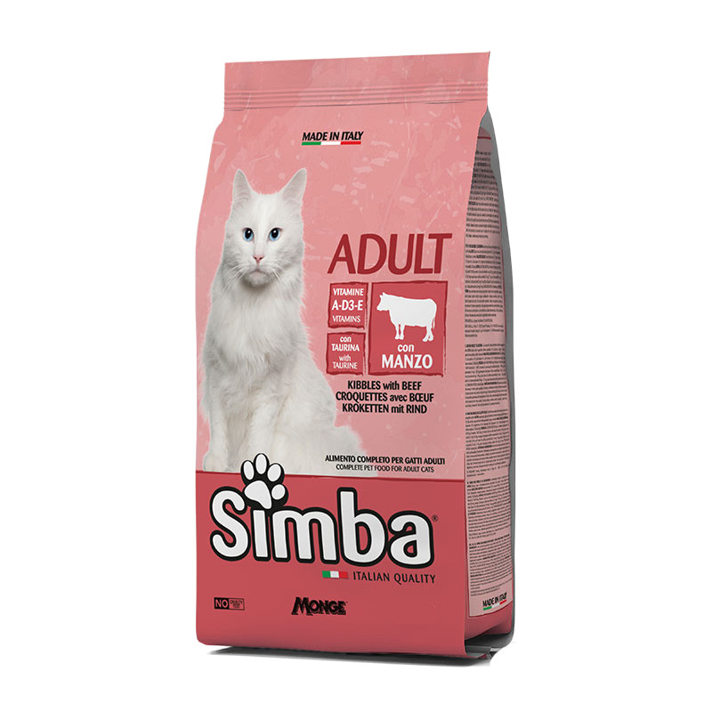 غذای خشک گربه بالغ مونژ مدل Simba Adult Cat kibbles طعم گوشت گاو وزن 2 کیلوگرم