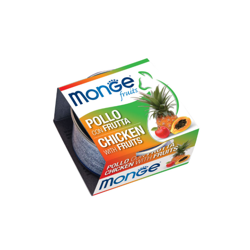 کنسرو غذای گربه بالغ مونژ مدل Monge Fruits طعم مرغ، آناناس، سیب و پاپایا وزن 80 گرم