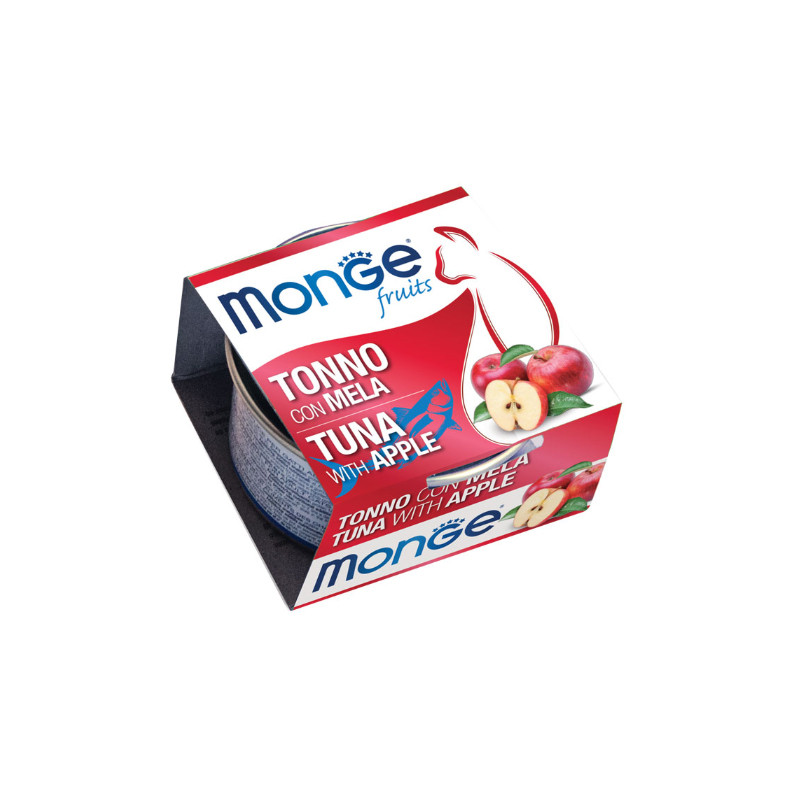 کنسرو غذای گربه بالغ مونژ مدل Monge Fruits طعم ماهی تن و سیب وزن 80 گرم