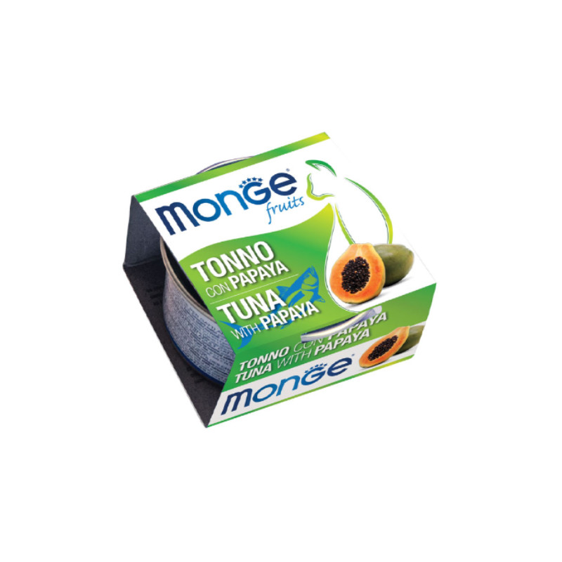 کنسرو غذای گربه بالغ مونژ مدل Monge Fruits طعم ماهی تن و پاپایا وزن 80 گرم