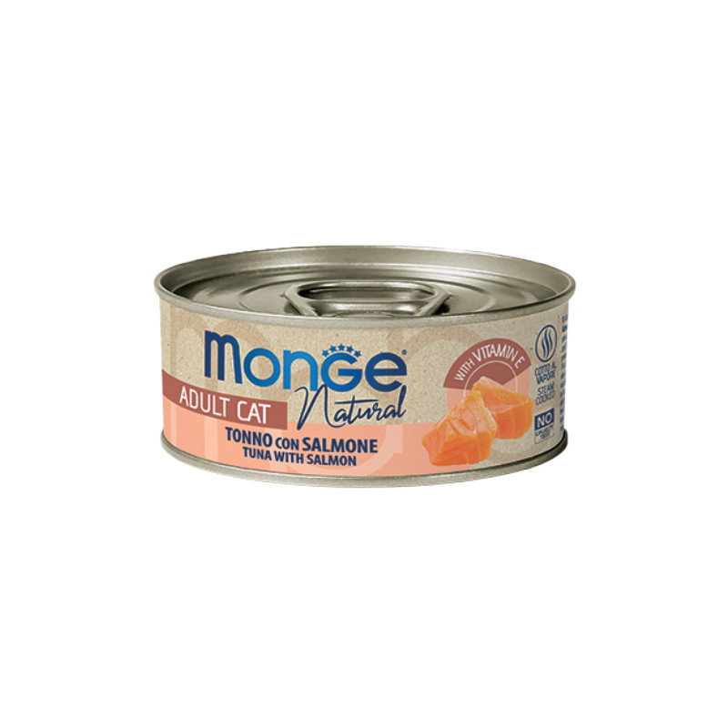 کنسرو غذای گربه بالغ مونژ مدل Monge Natural طعم ماهی تن و سالمون وزن 80 گرم