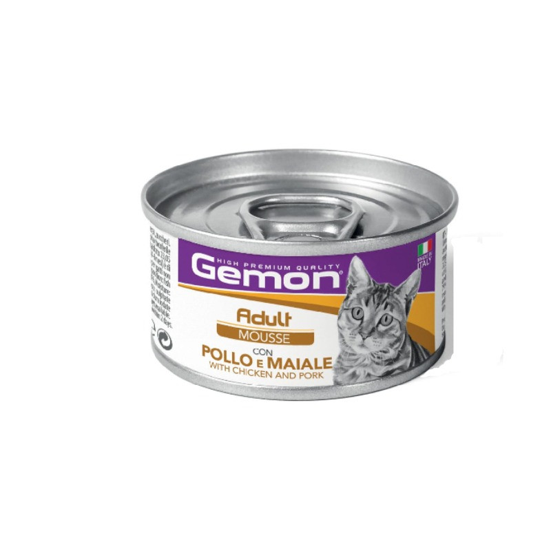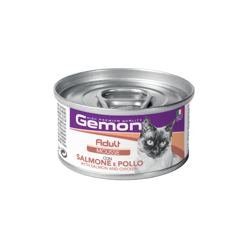 کنسرو غذای گربه بالغ مونژ مدل Gemon Mousse طعم مرغ و ماهی سالمون وزن 85 گرم