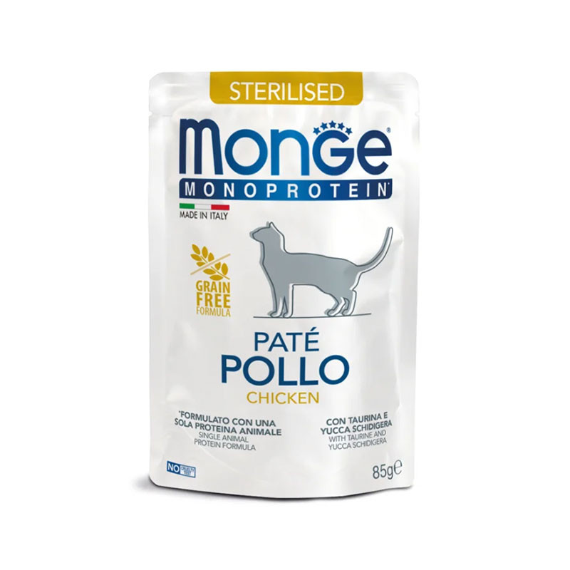 پوچ گربه بالغ عقیم شده مونژ مدل Monge Sterilised با طعم مرغ وزن 85 گرم