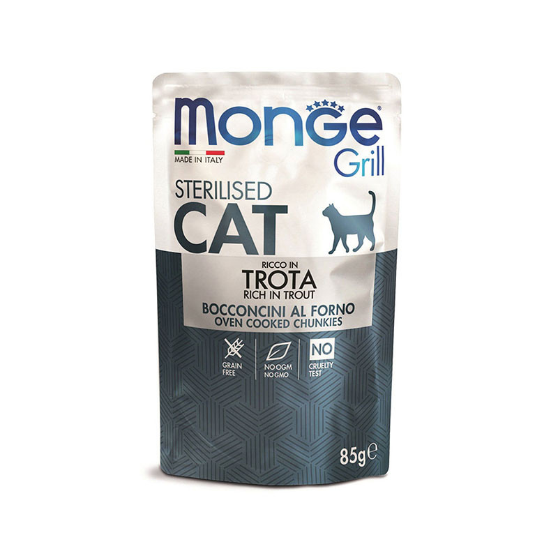 پوچ گربه بالغ مونژ مدل Monge Grill Sterilised با طعم ماهی قزلآلا وزن 85 گرم