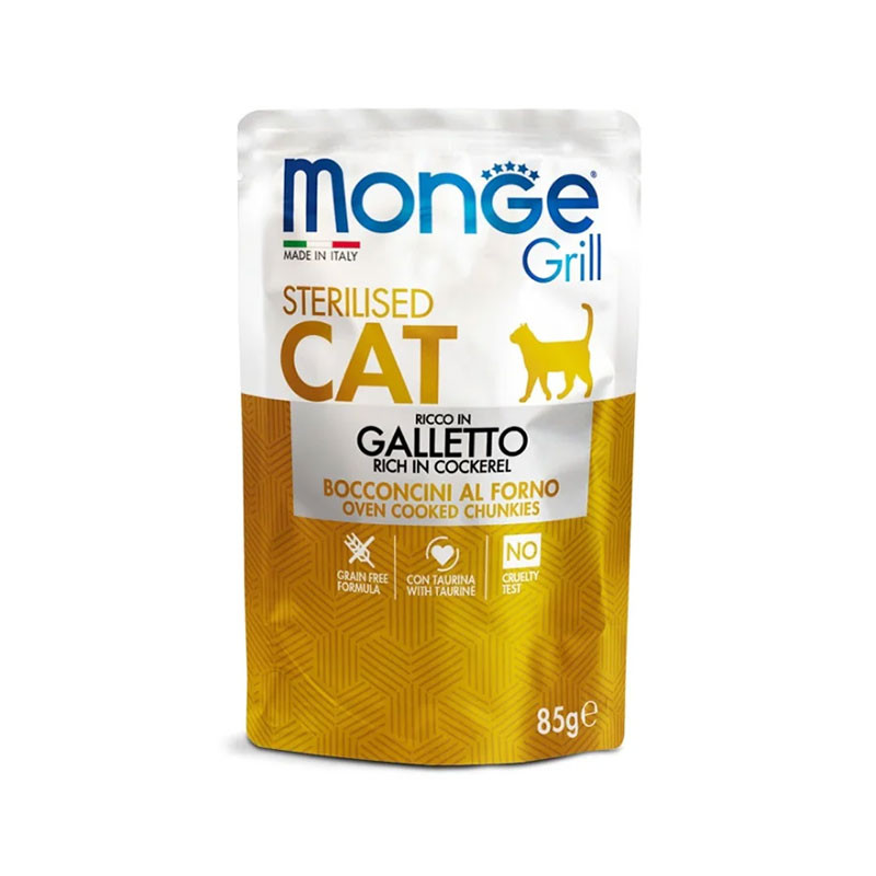 پوچ گربه بالغ مونژ مدل Monge Grill Sterilised با طعم مرغ وزن 85 گرم