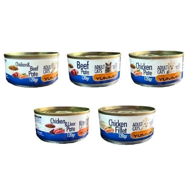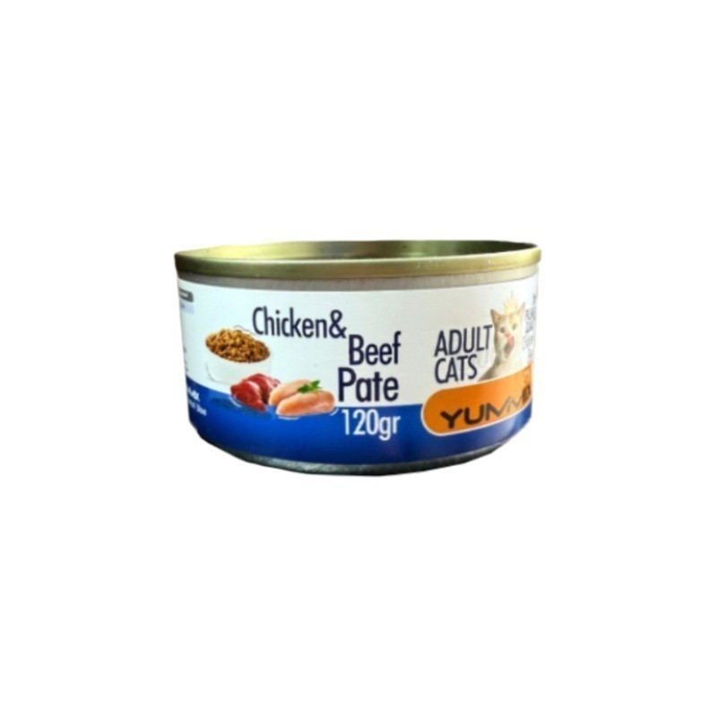 کنسرو غذای گربه بالغ یامیکس مدل پته طعم مرغ، گوشت گاو وزن ۱۲۰ گرم