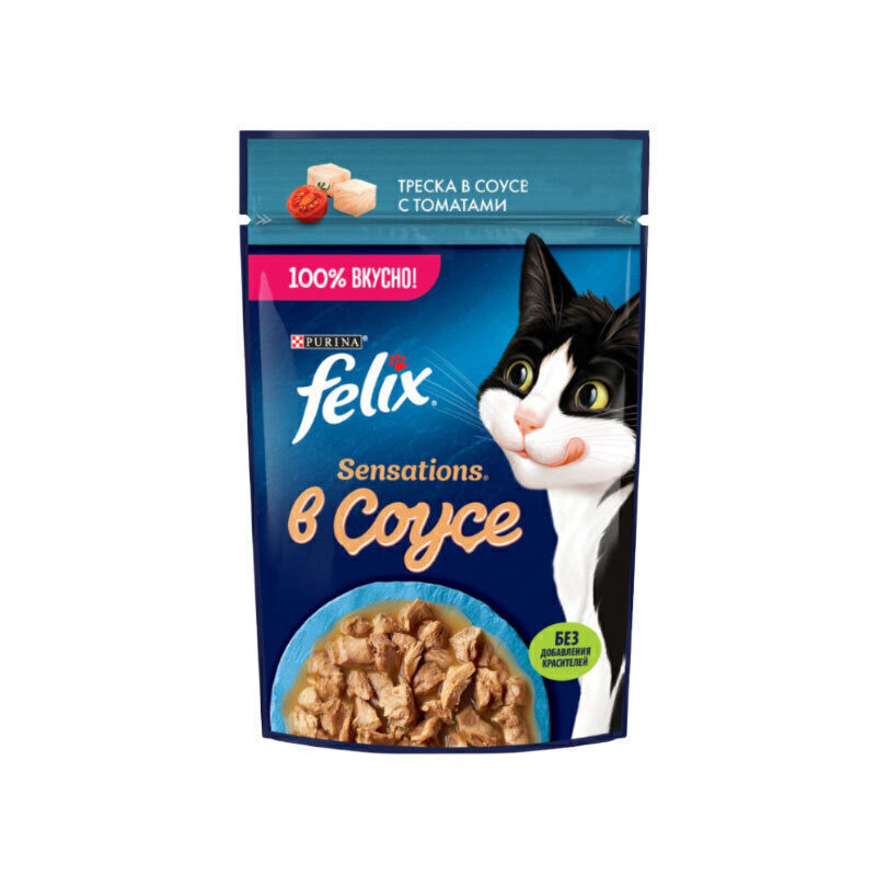 پوچ گربه بالغ فلیکس مدل Sensations With Fish in Tomato Sauce طعم ماهی در سس گوجه فرنگی وزن ۷۵ گرم