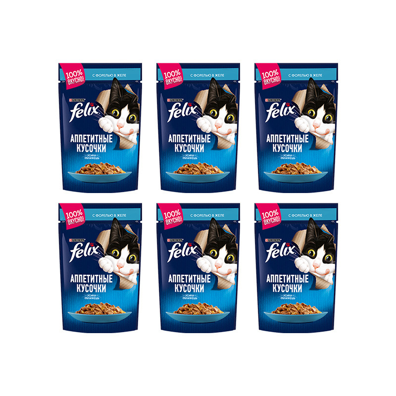 پوچ گربه بالغ فلیکس مدلin Jelly طعم ماهی قزل‌آلا وزن 450 گرم بسته 6 عددی
