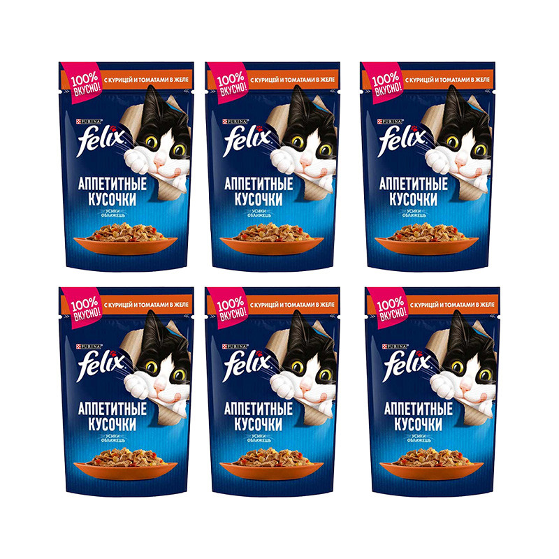 پوچ گربه بالغ فلیکس مدل Appetizing Pieces Chicken & Tomatoes in Jelly طعم مرغ و گوجه فرنگی وزن ۷۵ گرم