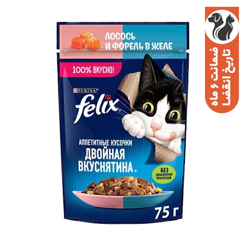 پوچ گربه بالغ فلیکس مدل Salmon & Trout In Jelly طعم سالمون و قزل‌آلا وزن ۷۵ گرم
