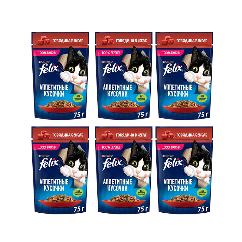 پوچ گربه فلیکس مدل in Jelly با طعم گوشت گاو وزن 410 گرم بسته 6 عددی