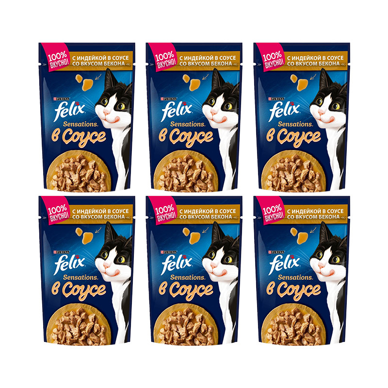 پوچ گربه بالغ فلیکس مدل in Bacon-flavored Sauce با طعم بوقلمون وزن 410 گرم  بسته 6 عددی