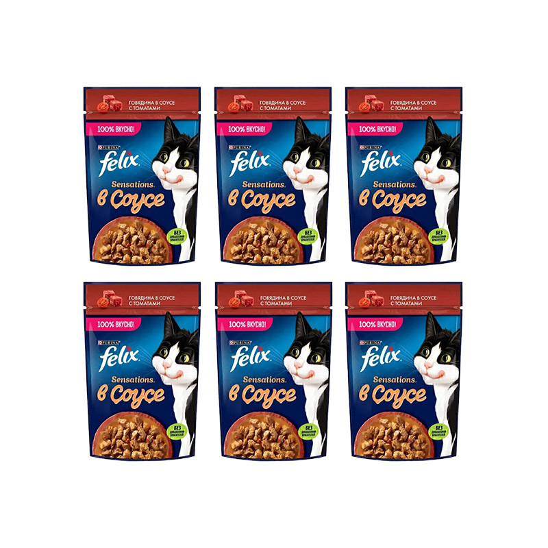 پوچ گربه فلیکس مدل in Sauce با طعم گوشت گاو وزن 410 گرم بسته 6 عددی