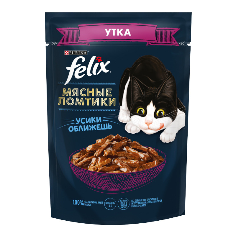 پوچ گربه بالغ فلیکس مدل Meat Slices Duck in Sauce طعم اردک وزن ۷۵ گرم