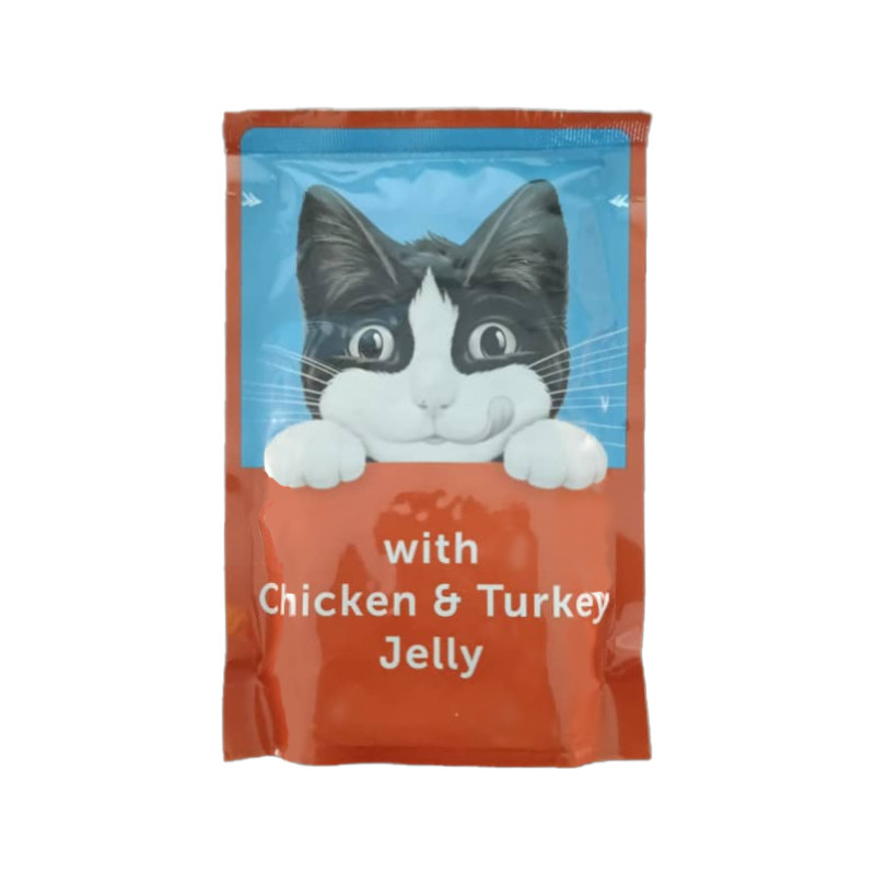 پوچ گربه بالغ فلیکس مدل Chicken & Turkey in Jelly طعم مرغ و بوقلمون وزن 85 گرم