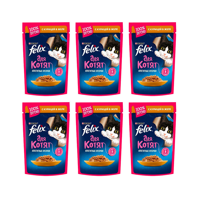 پوچ گربه نابالغ فلیکس مدل Kitten طعم مرغ وزن 410 گرم بسته 6 عددی