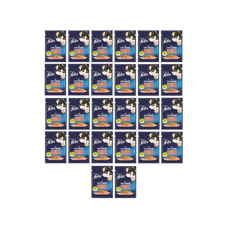 پوچ گربه بالغ فلیکس مدل The Delicacies با طعم ماهی سالمون و ساردین بسته 26 عددی