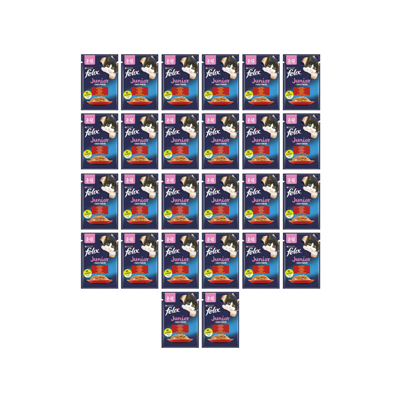 پوچ گربه بالغ فلیکس مدل The Delicacies Junior با طعم گوشت گاو بسته 26 عددی