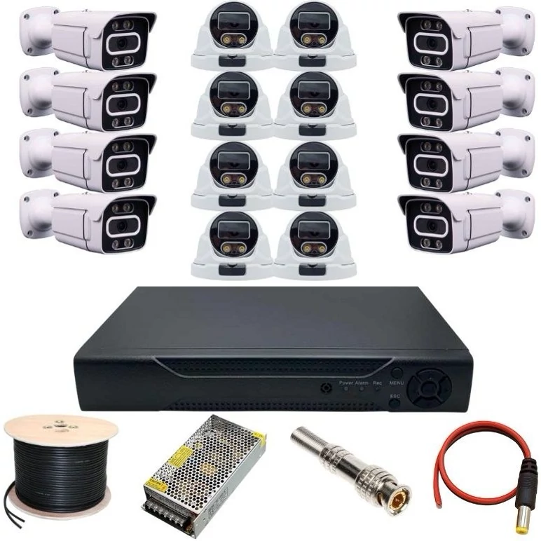 پک کامل 5 مگا پیکسل مداربسته 16دوربین ضد اب فول اچ دی دید در شب رنگی تشخیص چهره/0001