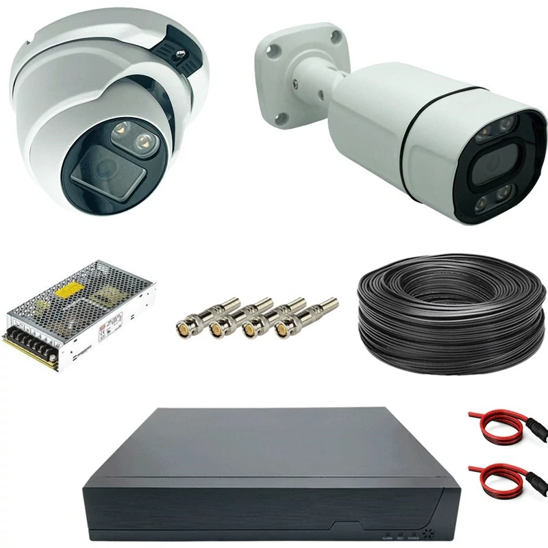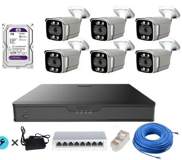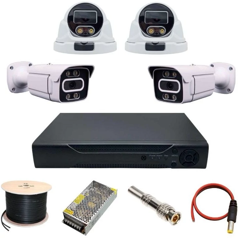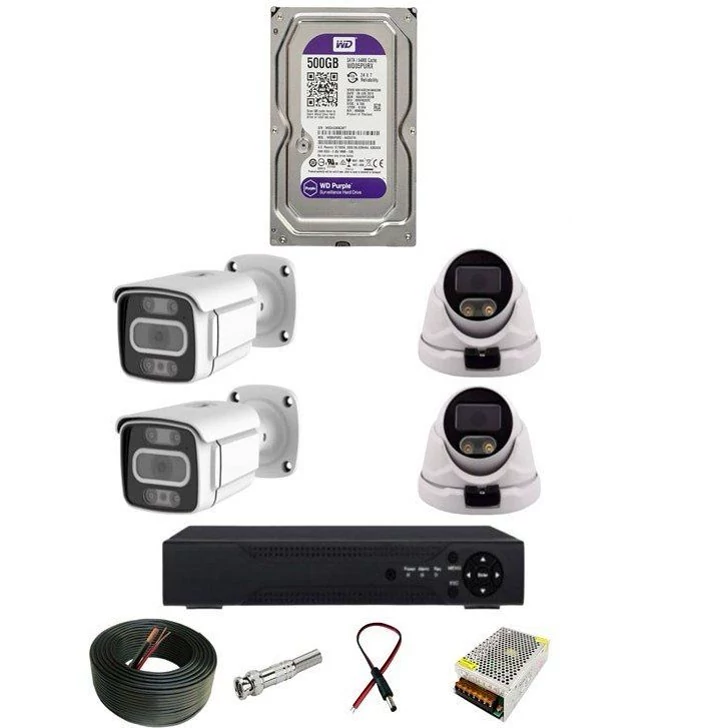 پک کامل 4 عددی دوربین مداربسته 5 مگاپیکسل فول اچ دی دام و بالت پلاک خوان و تشخیص چهره وارم لایت دیدشب رنگی