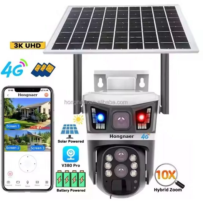دوربین مداربسته خورشیدی سیمکارتی V380 مدل LX-XW818-4G سه لنز 12 مگاپیکسل