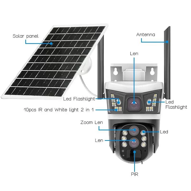 دوربین پنل خورشیدی بدون برق سه تصویر دو لنز 10 مگاپیکسل سولار