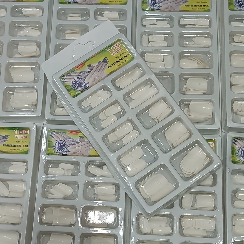 ناخن مصنوعی 100 عددی سر صاف شیری رنگ ناخون مصنوعی ساده