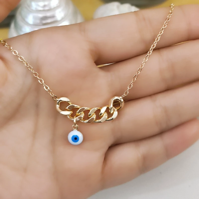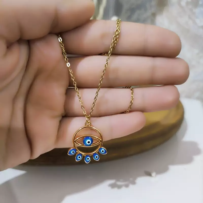پلاک زنجیرطرح چشم نظرآبی برنداستاینلس استیل رنگ ثابت بدلیجات مشابه طلااکسسوری وزیورآلات دخترانه وزنانه مناسب کادو وهدیه