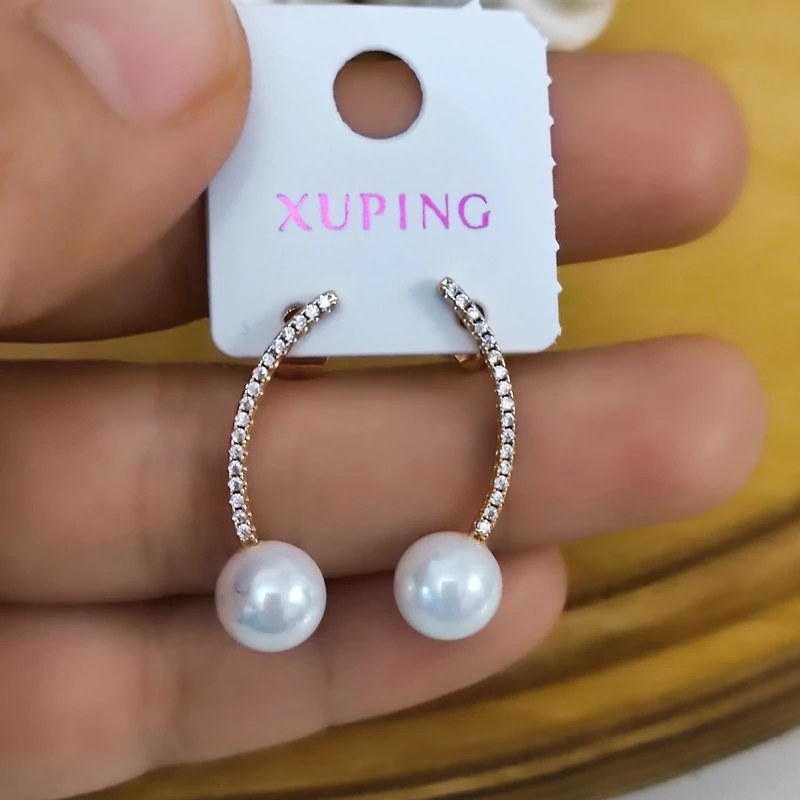گوشواره ژوپینگ مرواریدی نگین دار استیل رنگ ثابت