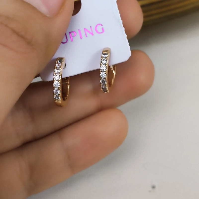 گوشواره ژوپینگ حلقه یک ردیف نگین برترین برند بدلیجات مشابه طلا اکسسوری خاص زیورآلات دخترانه وزنانه کادو وهدیه