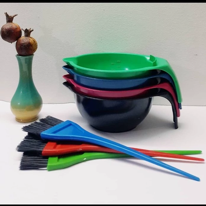 کاسه رنگ مو بهمراه فرچه رنگمو حرفه ای رنگمو و دکلره