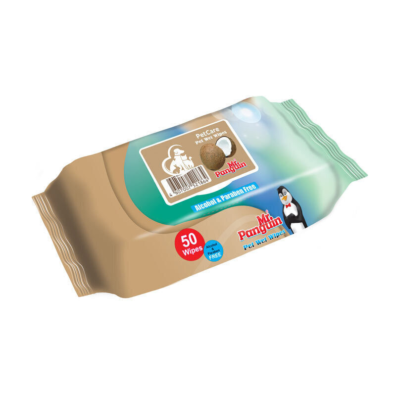 دستمال مرطوب حیوانات خانگی مستر پنگوئن مدل نارگیل بسته 50 عددی