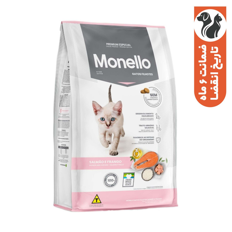 غذای خشک بچه گربه مونلو مدل Monello Kitten طعم ماهی سالمون و مرغ وزن 1 کیلوگرم