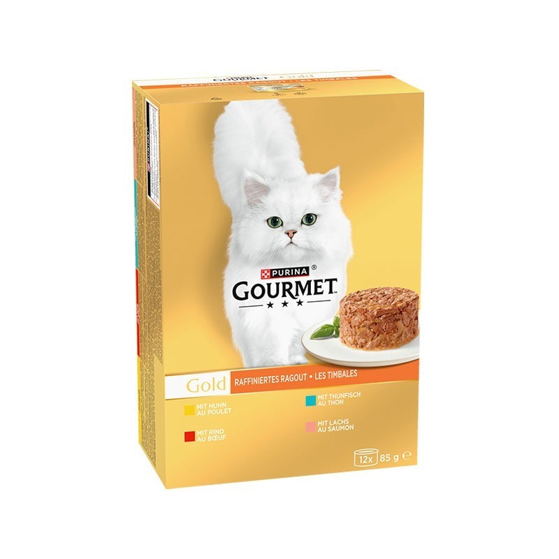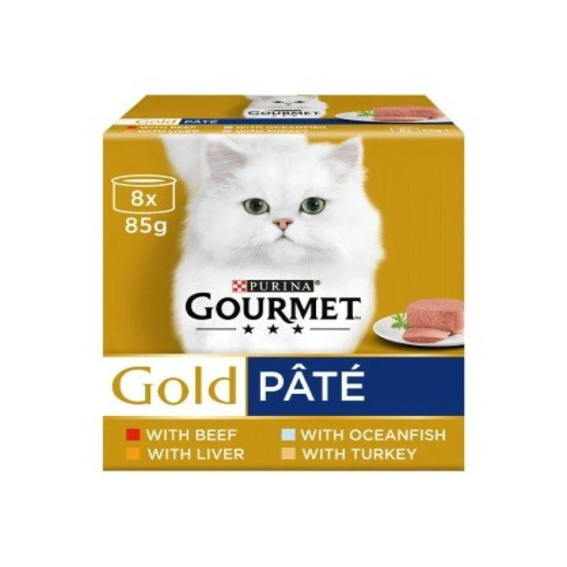 کنسرو غذای گربه بالغ گورمت مدل سفارش اروپا با طعم ماهی، بوقلمون، گوشت گاو و جگر بسته 8 عددی