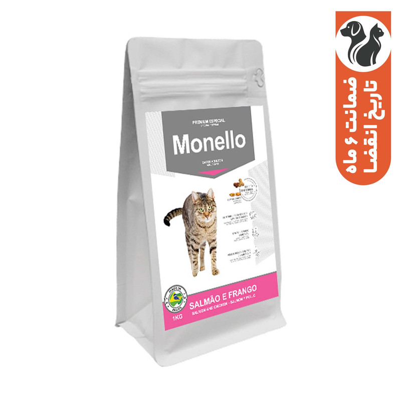 غذای خشک گربه بالغ مونلو مدل میکس طعم ماهی سالمون و مرغ وزن 1 کیلوگرم