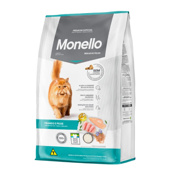 غذای خشک گربه بالغ مونلو مدل Hairball Control طعم مرغ و ماهی سالمون وزن 10 کیلوگرم