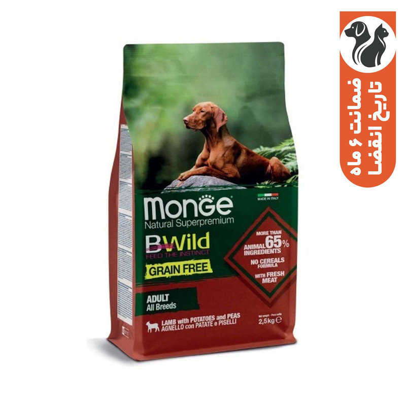 غذا خشک سگ بالغ مونژ مدل BWILD Adult Free All Breeds با طعم گوشت بره وزن 2.5 کیلوگرم