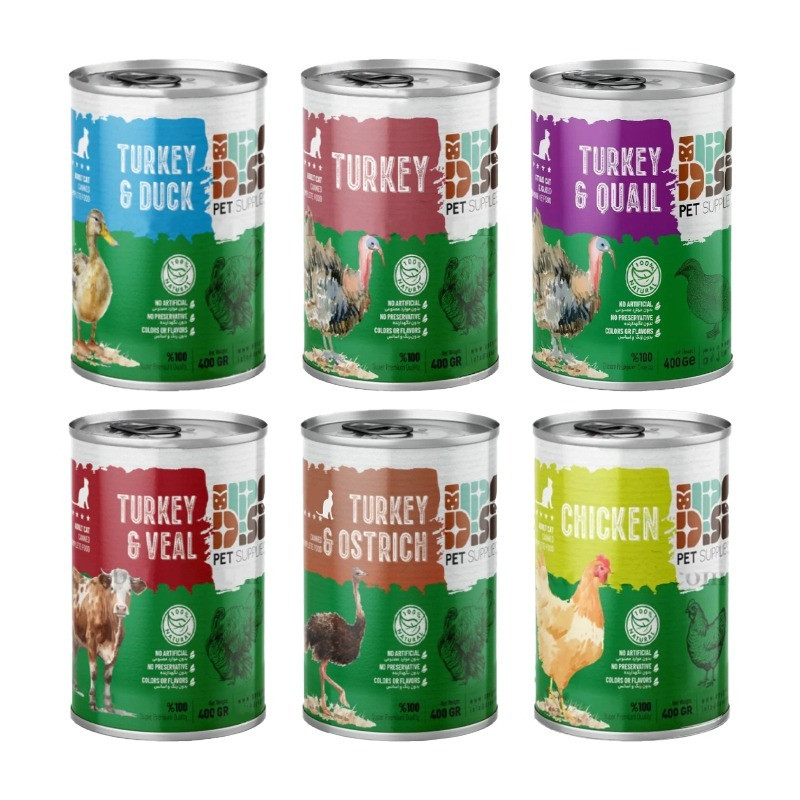 کنسرو گربه دی پی اس مدل بالغ نچرال طعم مرغ، بوقلمون، اردک بسته 6 عددی
