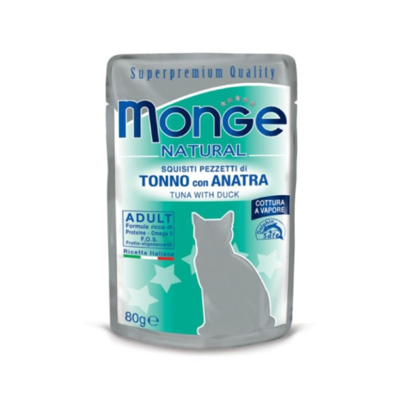 پوچ گربه بالغ مونژ مدل Monge Natural با طعم ماهی تن و اردک وزن 80 گرم