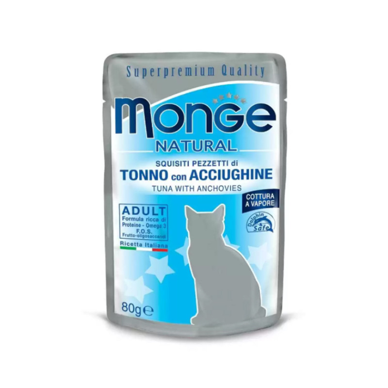 پوچ گربه بالغ مونژ مدل Monge Natural با طعم ماهی تن و کولی وزن 80 گرم