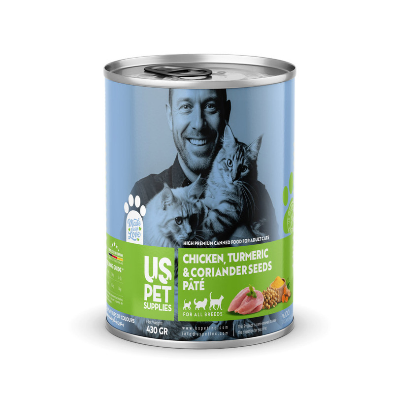 کنسرو غذای گربه بالغ یو اس پت مدل های پریمیوم طعم مرغ، گشنیز و زردچوبه وزن 430 گرم
