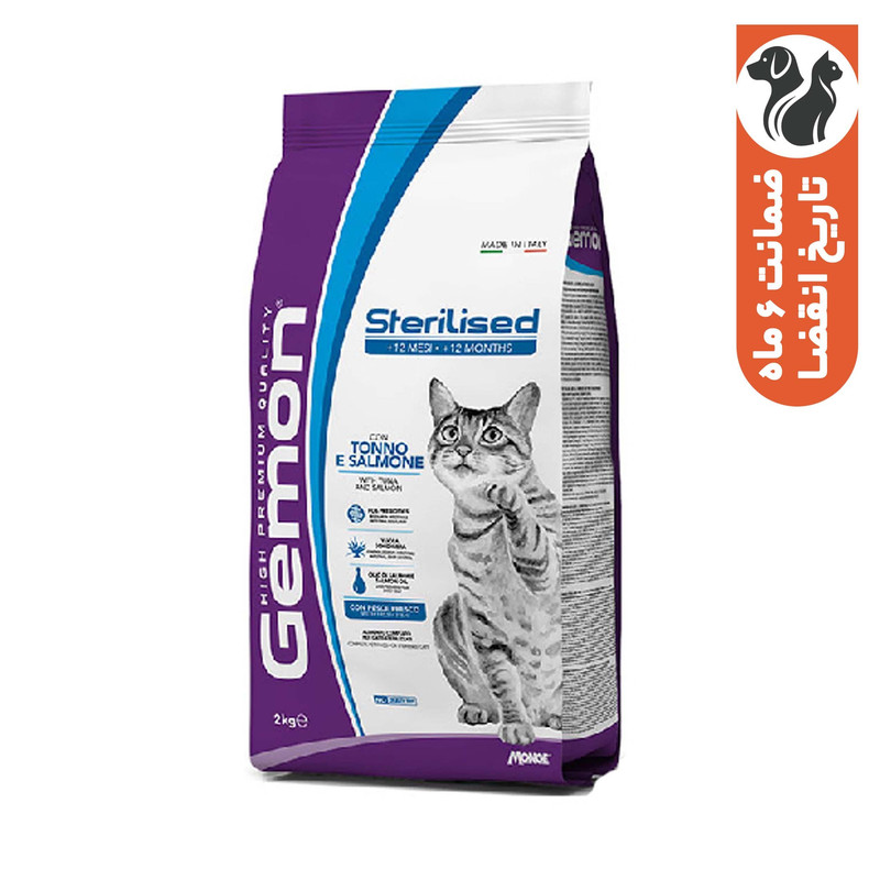 غذا خشک گربه عقیم بالغ مونژ مدل Gemon Sterilised Tuna and Salmone طعم ماهی تن و سالمون وزن 2 کیلوگرم