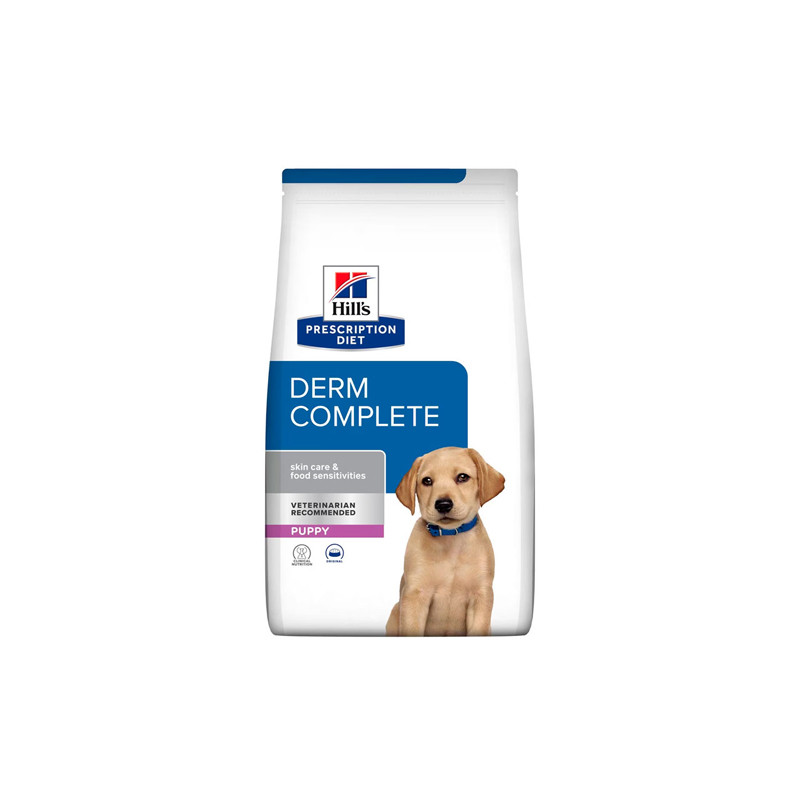 غذای خشک توله سگ هیلز مدل تقویت پوستومو و کاهش حساسیت Derm Complete با طعم مرغ وزن ۴ کیلوگرم