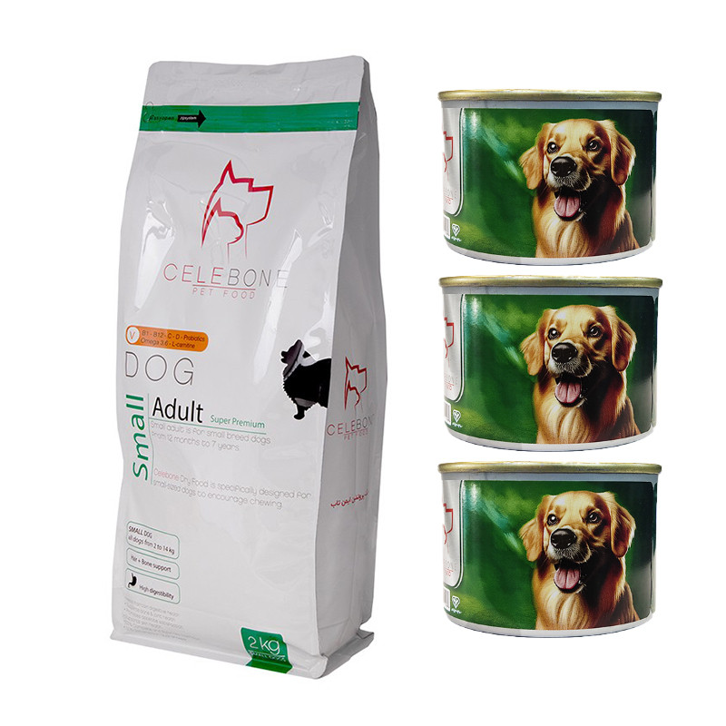 غذای خشک و کنسرو سگ بالغ سلبن مدل پک Small Adult با طعم مرغ بسته 4 عددی