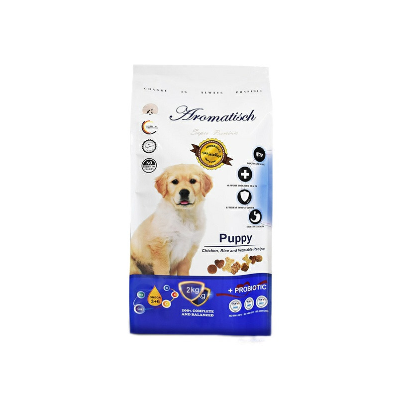 غذای خشک توله سگ آروماتیش مدل نژاد کوچک با طعم مرغ وزن ۲ کیلوگرم