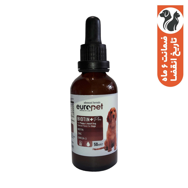 شربت تقویتی و حفاظتی پوست و مو سگ یوروپت مدل بیوتین پلاس حجم 50 میلی لیتر