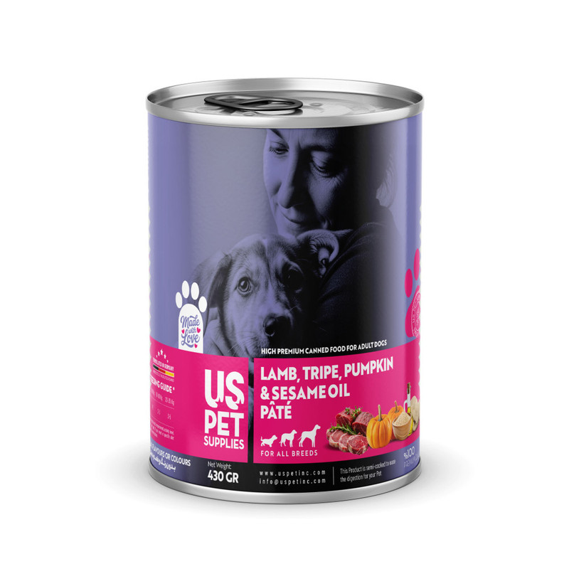 کنسرو غذای سگ یو اس پت مدل های پریمیوم طعم گوشت بره و سیرابی وزن 430 گرم