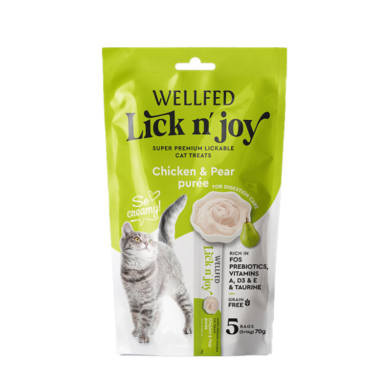 تشویقی گربه ولفد مدل تقویت سیستم گوارش طعم مرغ و گلابی بسته 5 عددی