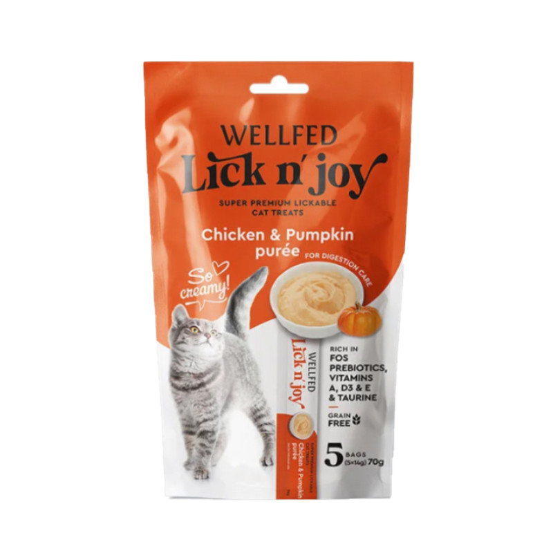 تشویقی گربه ولفد مدل تقویت سیستم گوارش طعم مرغ و کدو حلوایی بسته 5 عددی