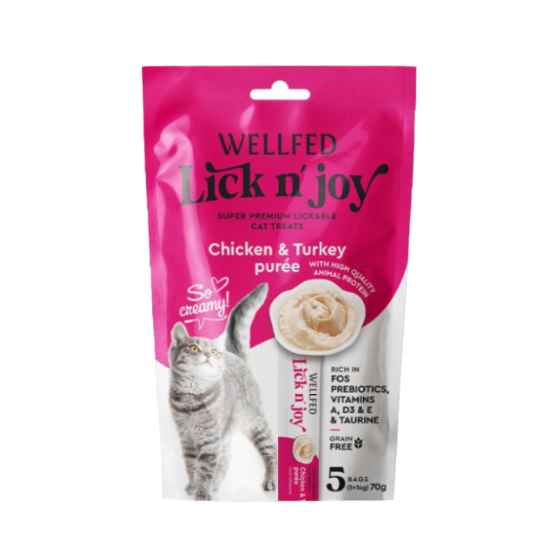 تشویقی گربه ولفد مدل تقویت سیستم گوارش طعم مرغ و بوقلمون بسته 5 عددی